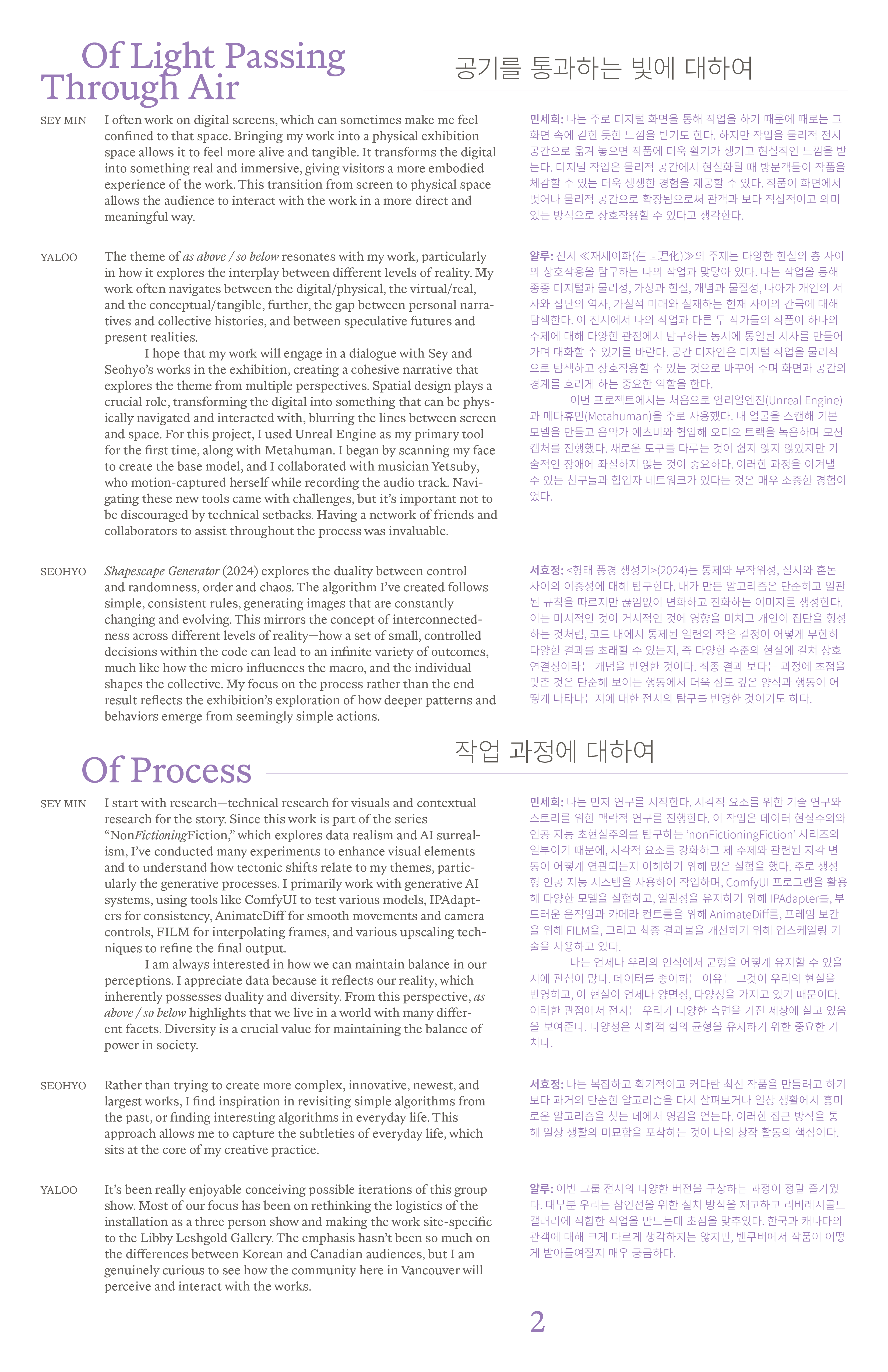 Two-page handout inclued exhibition details, biographies and interviews with the artists.